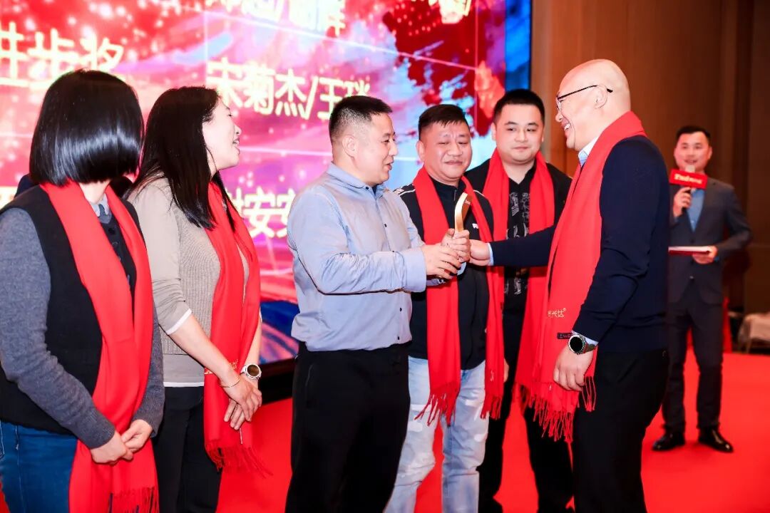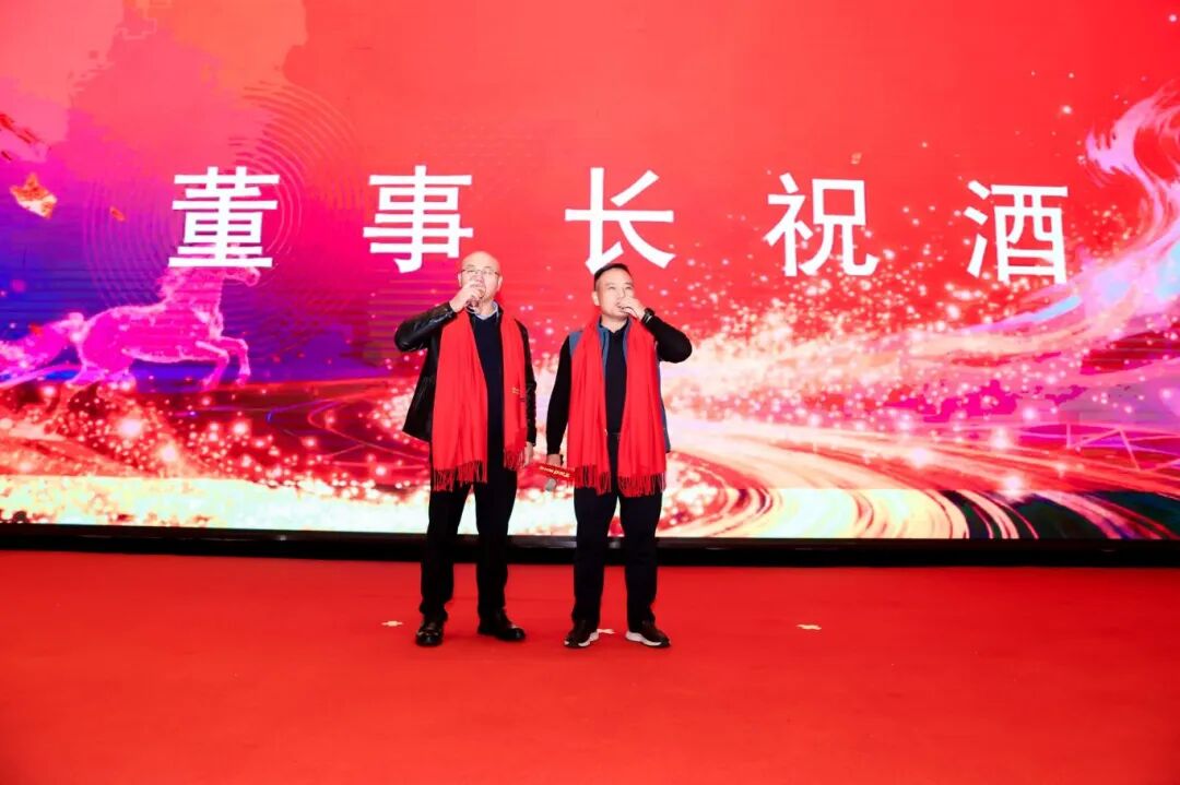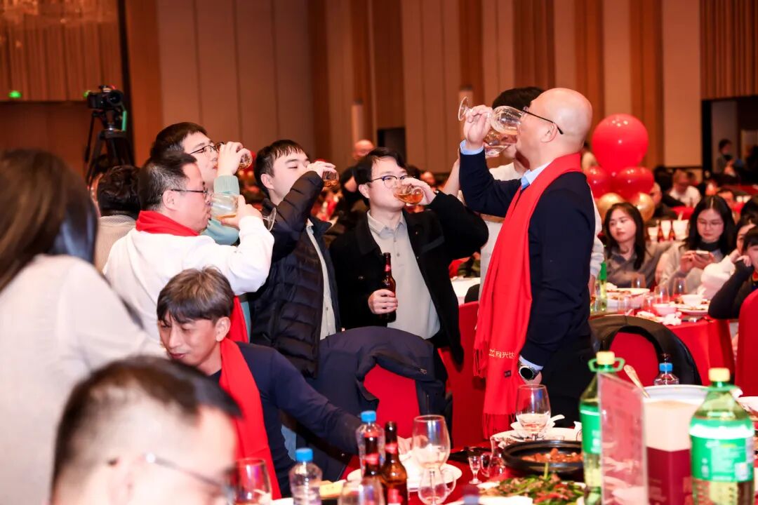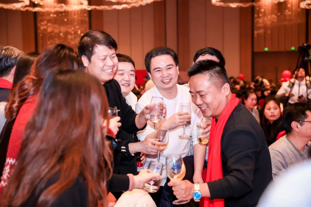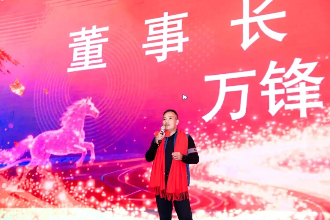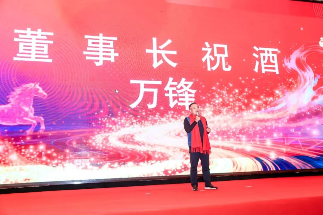 随后,在现场雷鸣般的掌声中,董事长万锋先生手擎酒杯登台发表祝酒词。万董率先回顾了2025年上半年度的达标情况,更肯定了2025年下半年度的付出与成绩,并感谢每一位同兴达人的坚守与奋斗。在致辞的最后,万董提议全体举杯,为辉煌的过去与可期的未来共同祝愿。此刻,一千余人的酒杯轻碰,清脆声响汇聚成一片充满力量的海洋,将晚宴推向第一个情感高潮。
