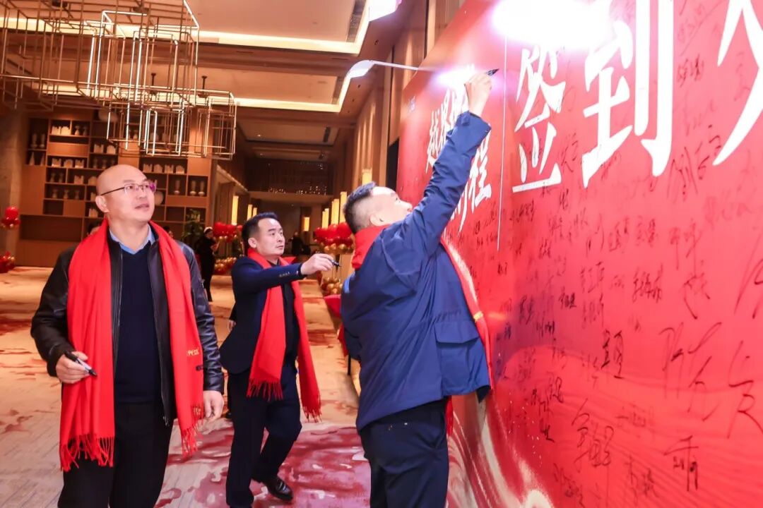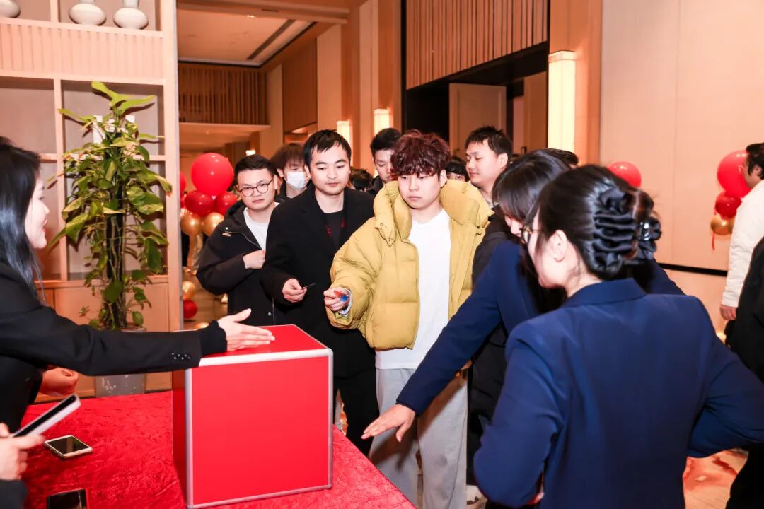 本次晚宴以“越界增长,共曜前程”为主题,流程设计环环相扣,将庄重的仪式感与热烈的庆典氛围完美融合。17时许,与会人员陆续抵达,在精心布置的主题签到墙前签到并合影留念,现场循环播放的暖场音乐与发布的朋友圈集赞活动,迅速凝聚起欢乐与期待的现场氛围。