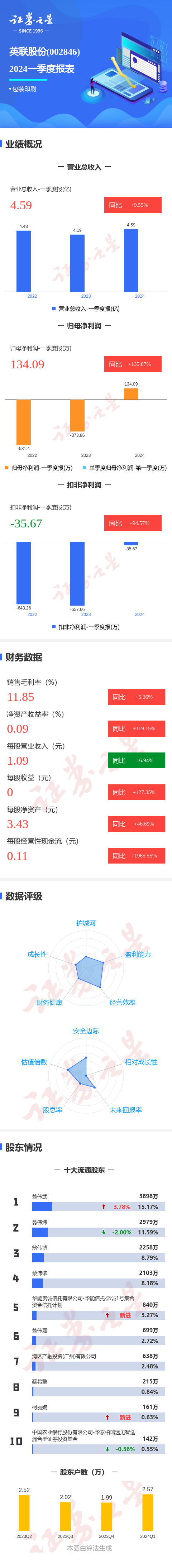 证券之星消息,英联股份2024年一季报显示,公司主营收入4.6亿元,同比上升9.55%;归母净利润134.1万元,同比上升135.87%;扣非净利润-35.68万元,同比上升94.57%;负债率54.53%,投资收益9.05万元,财务费用962.52万元,毛利率11.85%。
