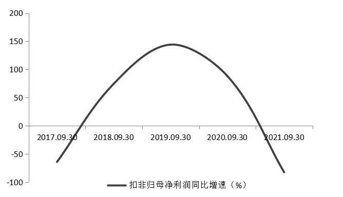 盐津铺子2017年—2021年公司各年第三季度扣非归母净利润同比增速(%)