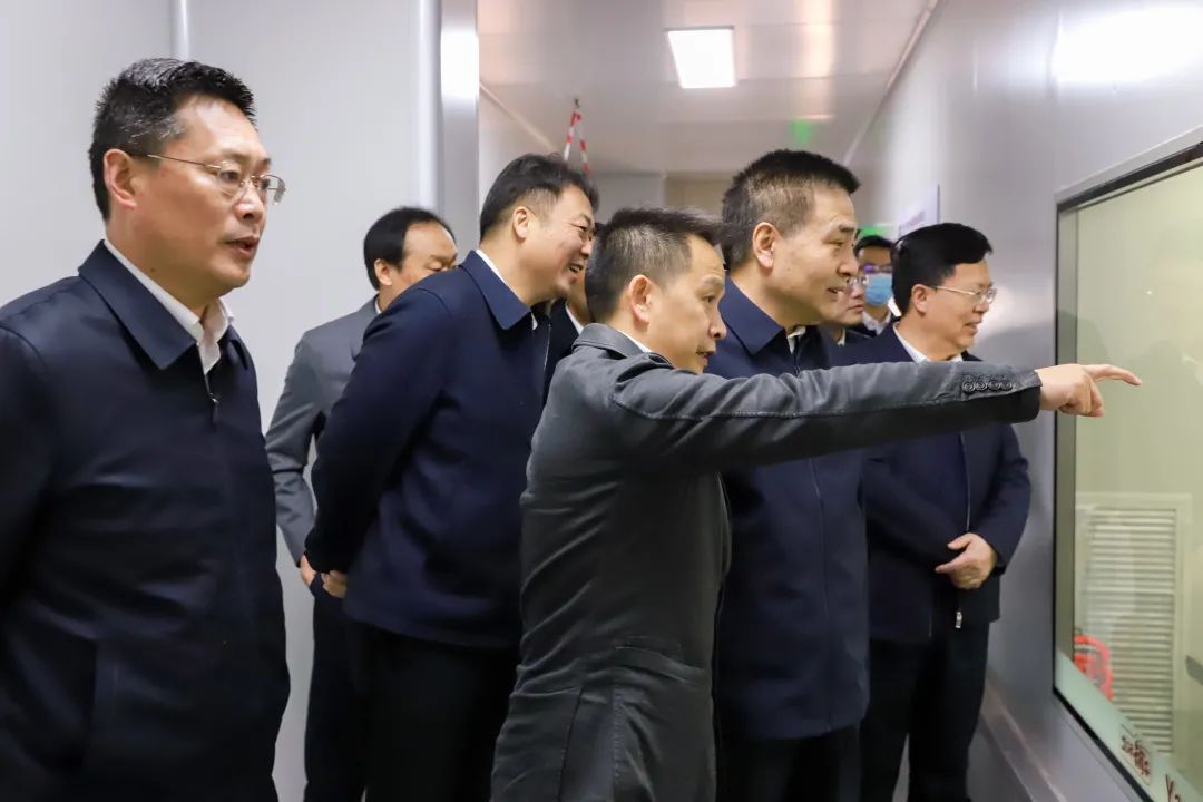 随后田立文院长一行进入生产车间参观,透过玻璃窗看到自动化机器正有条不紊的作业。