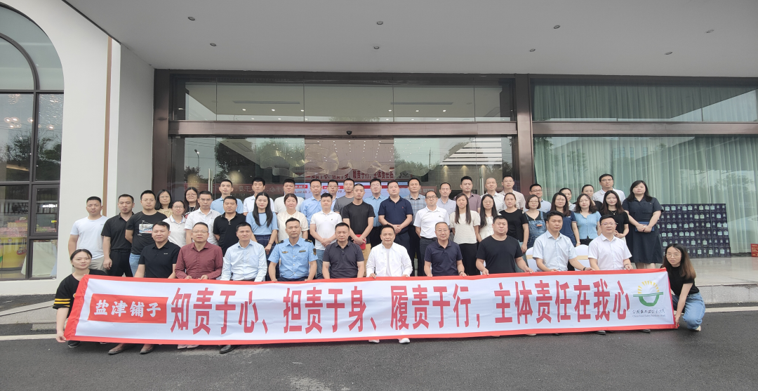 盐津铺子集团董事长张学武、副总经理黄敏胜、副总经理罗新平、副总经理李汉明以及公司全体中高层管理人员出席会议。浏阳市市场监督管理局经开区分局所长刘守响、金阳市场监督管理所副所长李浩受邀参加会议。