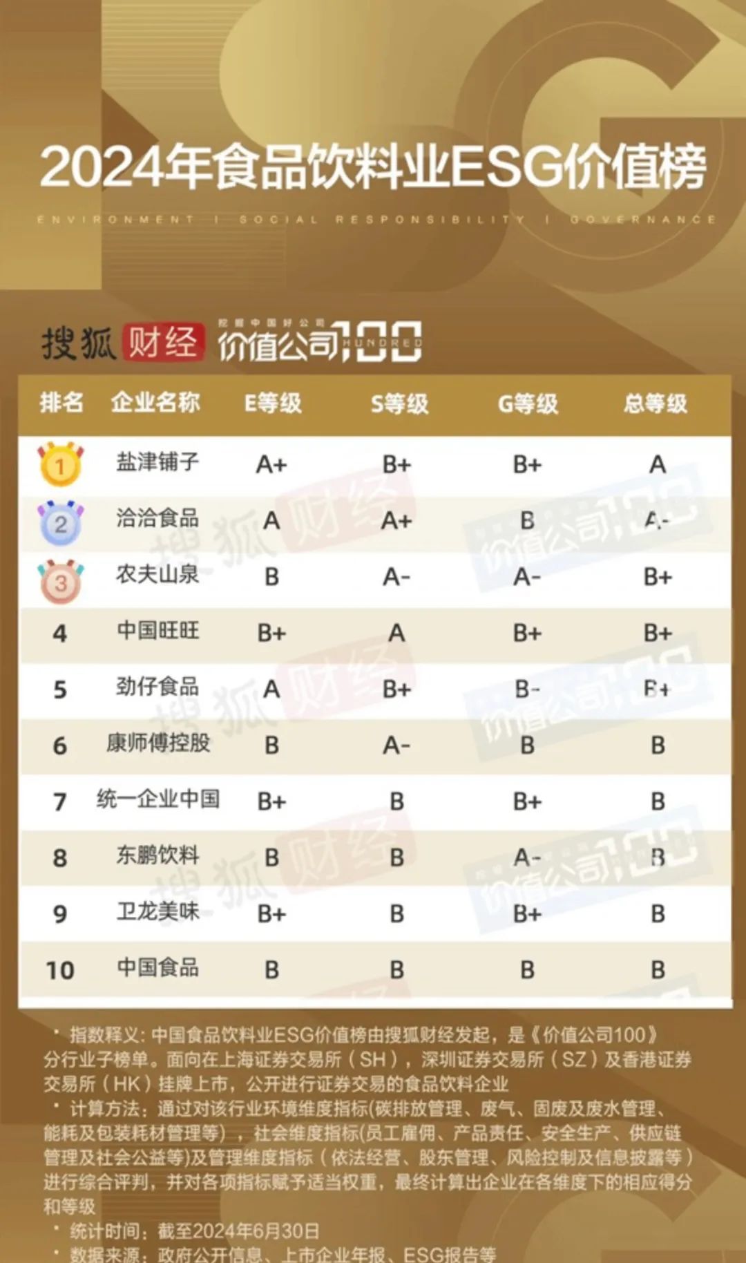 近日,搜狐财经发布“中国食品饮料业ESG价值榜”,盐津铺子(002847)获得行业最高的A级评价,是环境维度和总榜“双料冠军”,洽洽食品和农夫山泉分列二、三位。