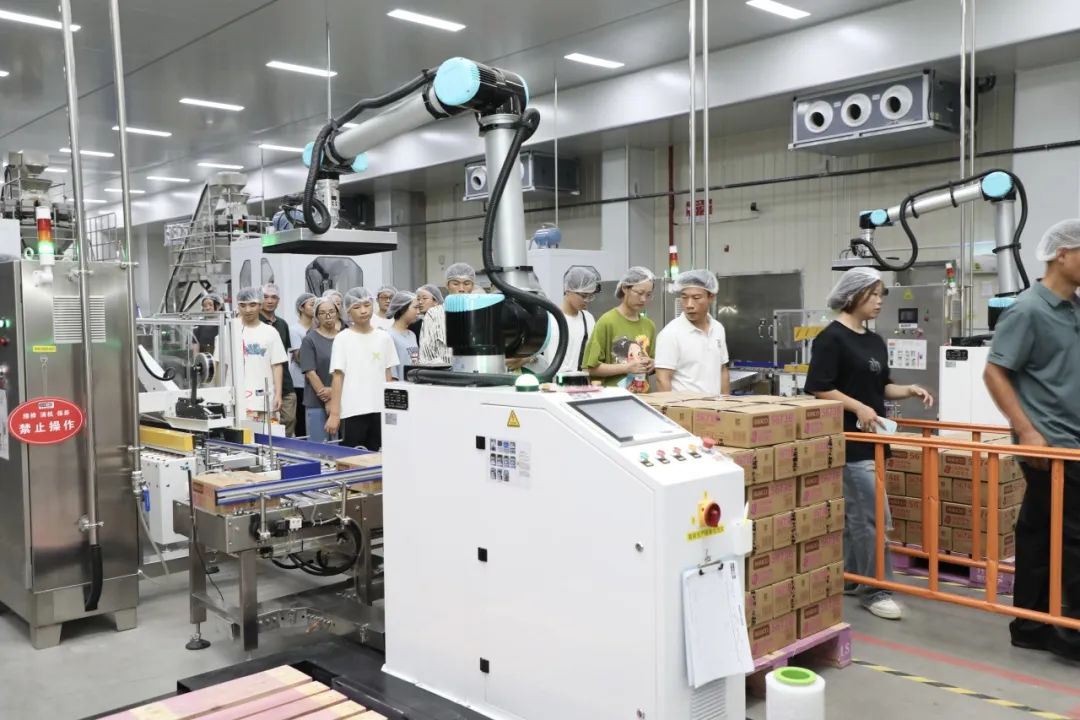 活动当天,四十余名接受嘉奖的员工子女及亲属来到盐津铺子浏阳生产基地观摩智能制造生产车间。