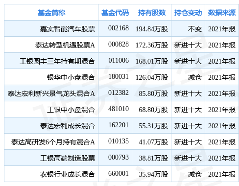 2月10日科达利(002850)(002850)跌5.39%,收盘报135.27元。根据2021年报基金重仓股数据,重仓该股的基金共40家,其中持有数量最多的基金为嘉实智能汽车。嘉实智能汽车股票目前规模为60.58亿元,最新净值3.988(2月9日),较上一日上涨0.2%,近一年上涨12.02%。