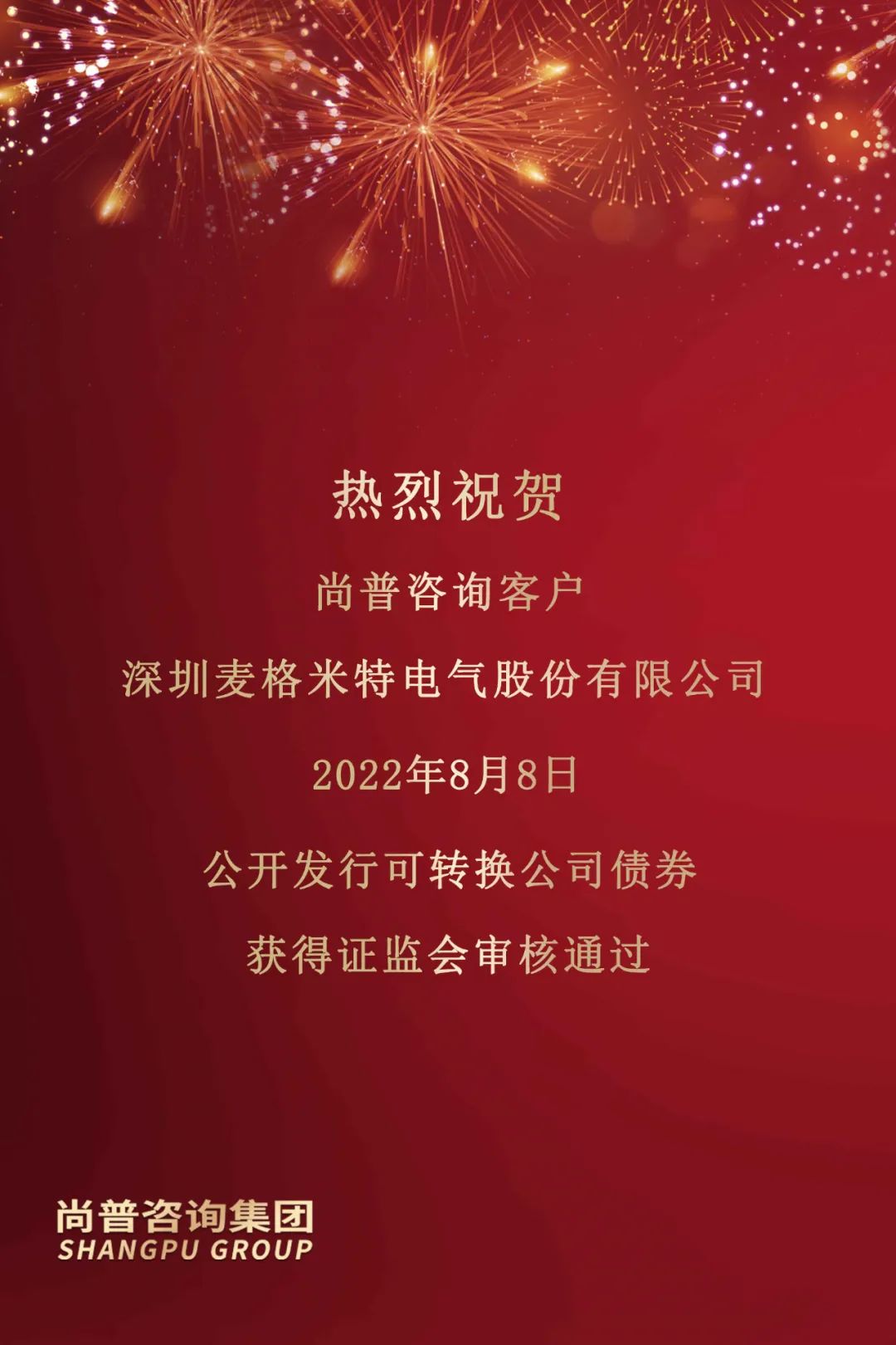 最后,再次祝贺深圳麦格米特电气股份有限公司公开发行可转换公司债券获得审核通过!