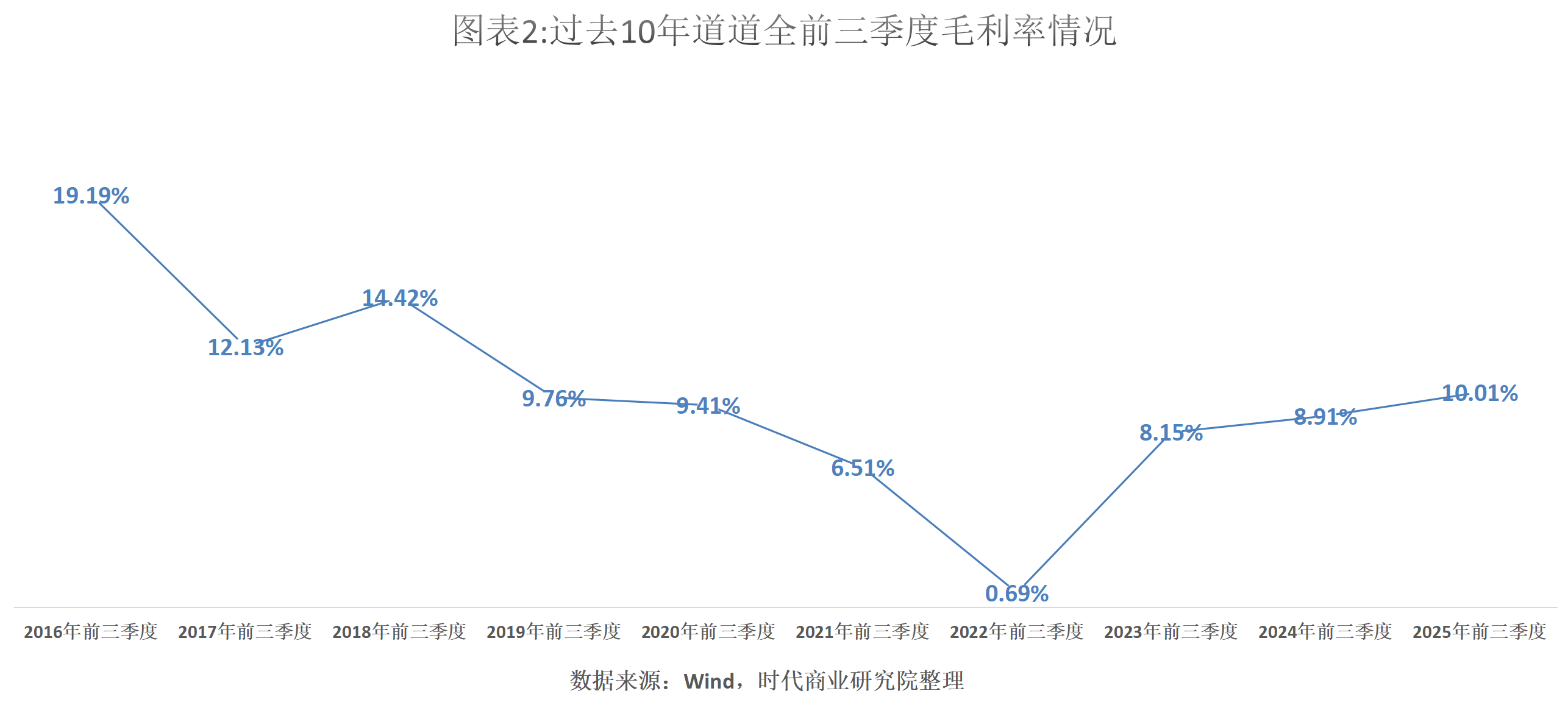 数据显示,今年前三季度,道道全的毛利率为10.01%,较去年同期的8.91%提升了1.1个百分点,并达到自2019年以来同期最高水平。