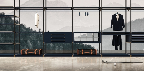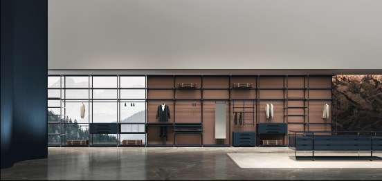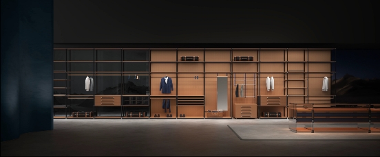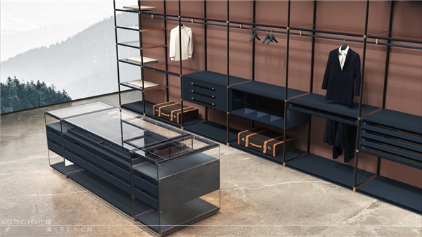 通过模块化的设计,境系列衣帽间可满足客户更多的功能选择,抽屉模块、长短衣物模块、置物架等各模块可自由组合。