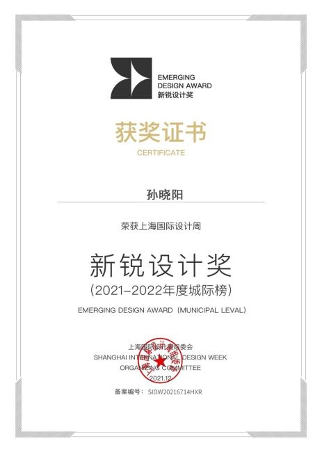 被誉为“全球设计师的奥林匹克盛会”的上海国际设计周,是一个专注于建筑与室内设计、工业设计、时尚设计、数字设计和品牌设计五大设计领域的全球设计师平台。其中,由上海国际设计周与中国贸促会商业委员会联合发起的新锐设计奖,是中国最具权威性和专业性的建筑与室内类奖项。皮阿诺(002853)设计总监孙晓阳先生此次以“境”系列全屋产品,荣获“上海国际设计周2021-2022年度城际榜新锐设计奖”,万众瞩目,可喜可贺。