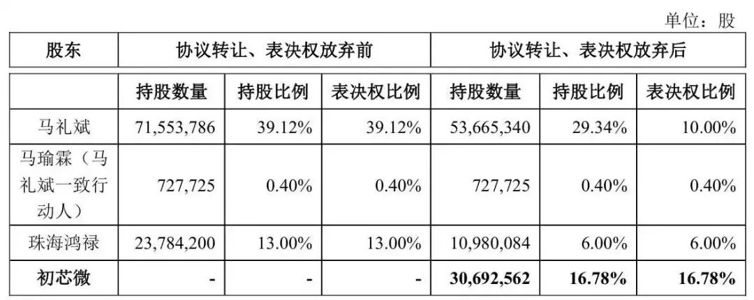 12月15日晚间,定制家居厂商皮阿诺发布公告称,皮阿诺实控人马礼斌以及其第二大股东珠海鸿禄分别与杭州初芯微科技合伙企业(简称“初芯微”)签署《股份转让协议》。交易后,皮阿诺控股股东变更为初芯微,实控人也将由马礼斌变更为尹佳音。