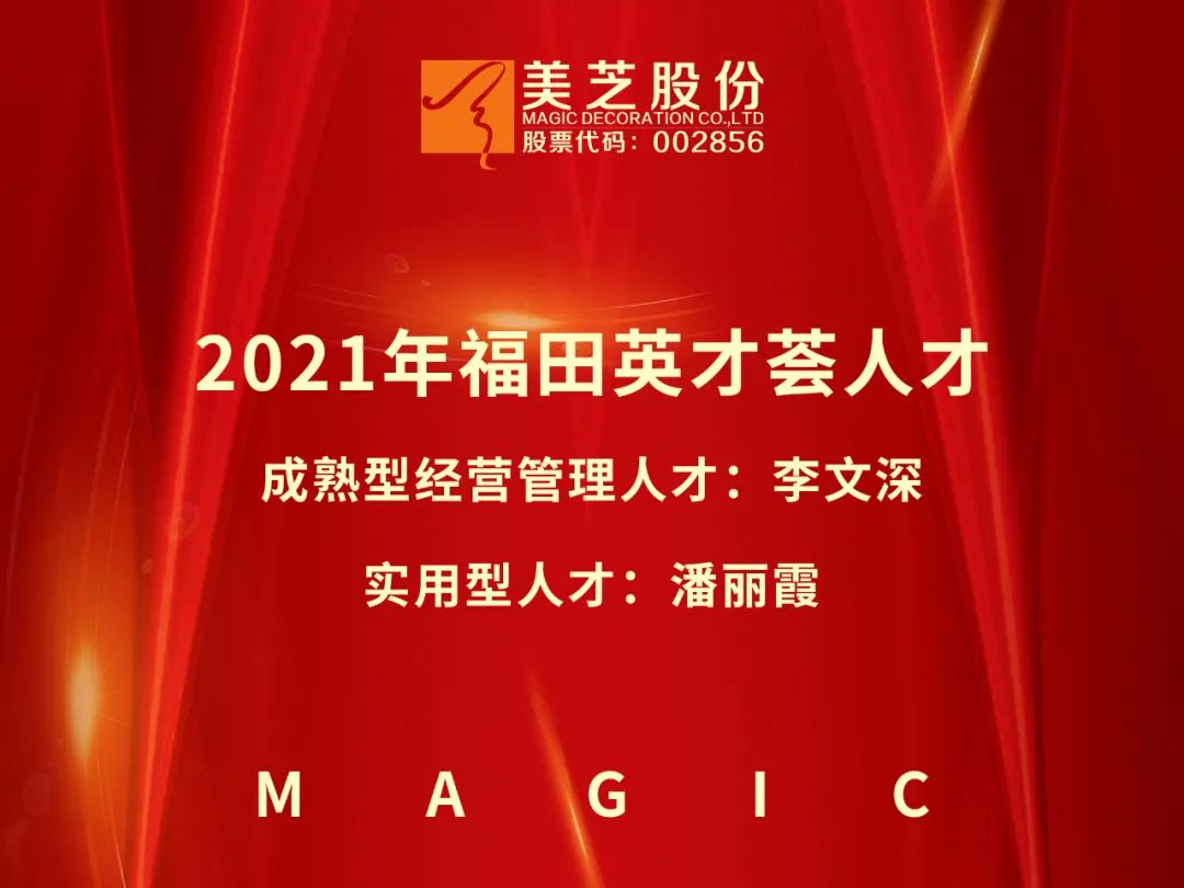 近日,福田区公布了2021年福田英才荟第一批项目(成熟型、成长型经营管理人才奖励)名单,美芝股份副总经理李文深、投标部经理潘丽霞分别获评2021年福田英才荟第一批“成熟型经营管理人才”与“实用型人才”称号。