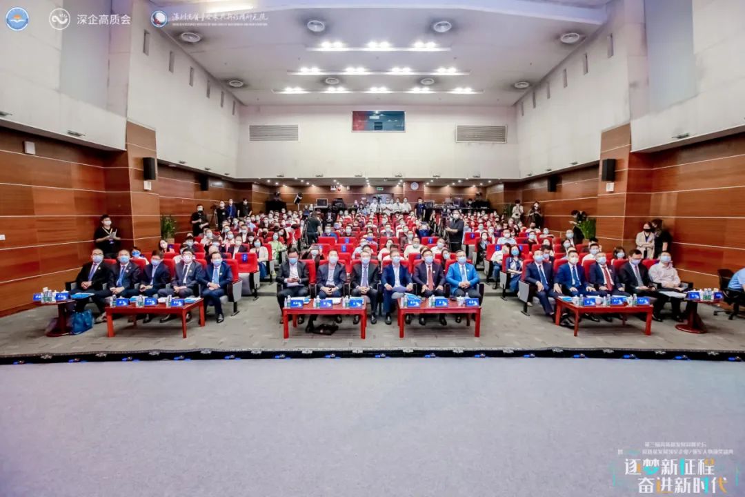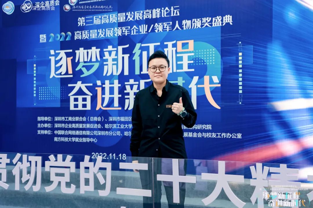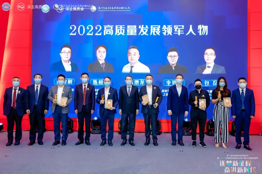 逐梦新征程,奋进新时代,学习贯彻党的二十大精神,推动企业高质量发展。2022年11月18日,由深圳市工商业联合会(总商会)作为指导单位,深圳市企业高质量发展促进会与哈尔滨工业大学(深圳)深圳高质量发展与新结构研究院联合主办的第三届高质量发展高峰论坛暨2022高质量发展“领军企业、领军人物”颁奖盛典在深圳市联通大厦隆重举行。深圳市原政协主席戴北方,深圳市市委常委、统战部部长王强,深圳市原副市长、香港中文大学(深圳)理事唐杰,深圳市委统战部副部长、市工商联党组书记李勇,南方科技大学党委书记李凤亮,深圳技术大学校长阮双琛,加拿大工程院院士、电子科技大学(深圳)高等研究院教授杨军,深圳北理莫斯科大学党委书记朱迪俭,深圳职业技术学院校长许建领,中国科学院深圳先进技术研究院副院长刘陈立,深圳市委党校二级教授、深圳北理莫斯科大学教授袁晓江,哈尔滨工业大学(深圳)教授、校长助理马广富等政府及高校领导莅临现场,共襄盛举。