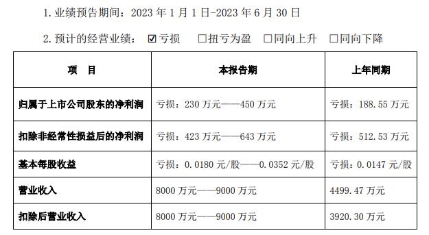 【仪表网行业财报】7月15日,三晖电气(002857)发布半年度业绩预告,公司预计2023年1-6月归属于上市公司股东的净利润为-450.00万--230.00万,净利润同比下降138.66%至21.98%;预计营业收入为8000.00万至9000.00万元,预计基本每股收益为-0.0352至-0.018元。