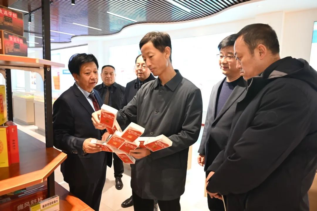 各位嘉宾参观了盘龙药业中药配方颗粒研发、产业化项目,秦岭盘龙谷康养文旅-西安医学院附属秦岭康复医院的施工建设情况,道地药材标本。双方领导就深化校企合作、推进产学研一体化发展等方面进行了深入交流和座谈。