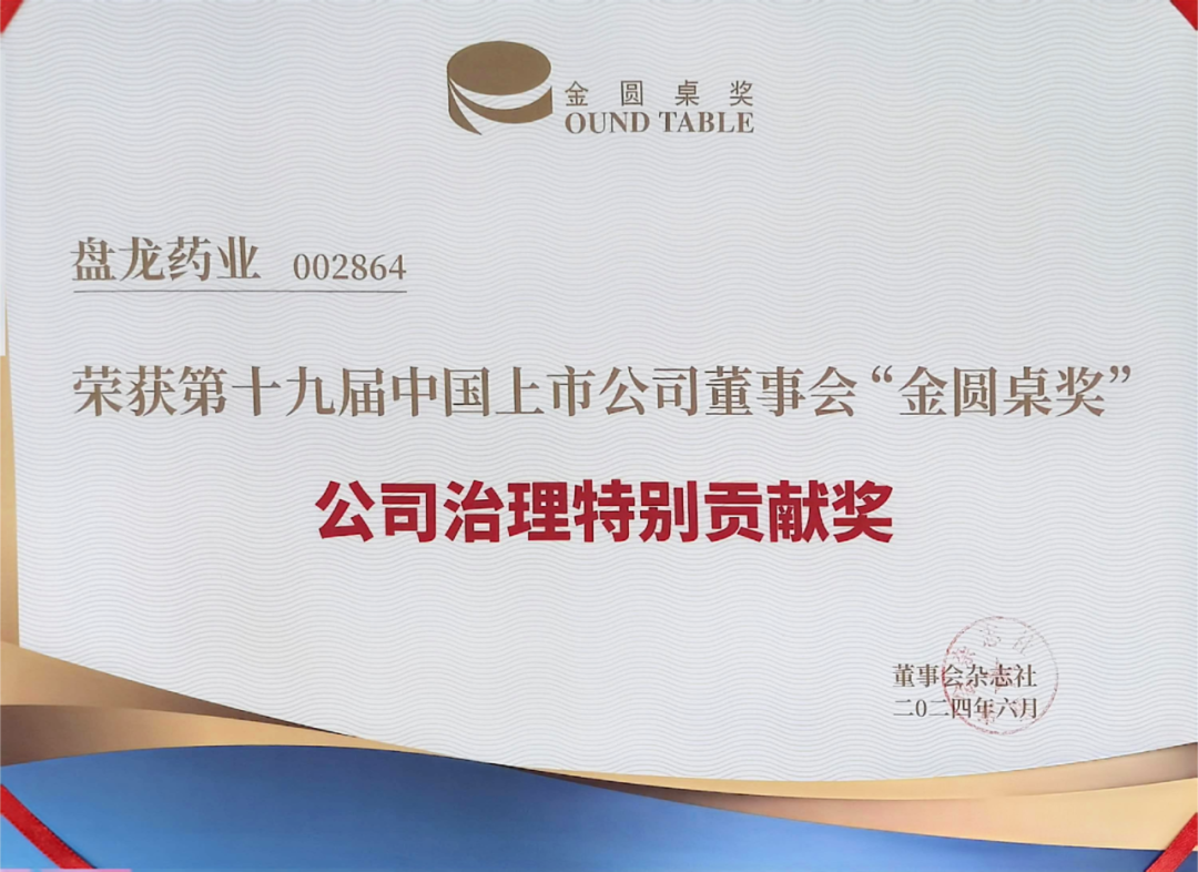 近日,备受资本市场瞩目的第十九届中国上市公司董事会“金圆桌奖”颁奖典礼圆满落幕。经过初评、复核、公示及专家终审四个环节,盘龙药业脱颖而出,荣获“公司治理特别贡献奖”。
