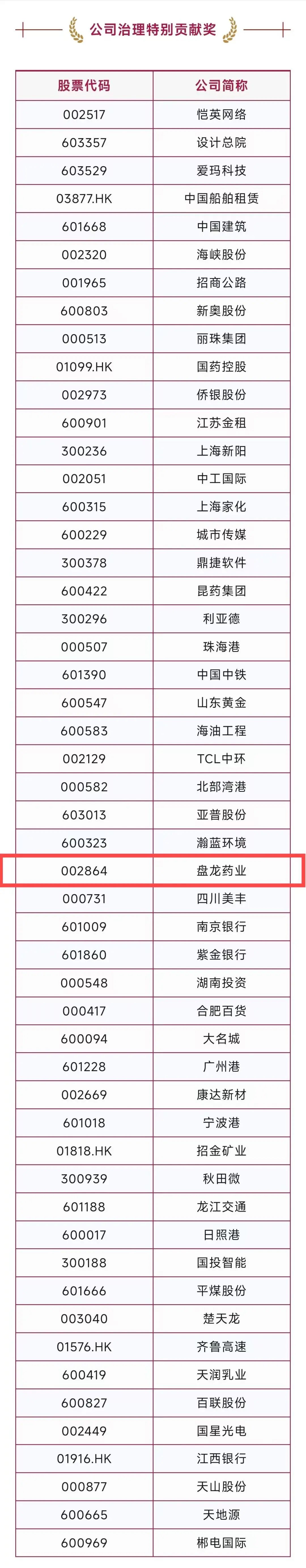 此次获奖,是资本市场对盘龙药业在ESG建设、公司治理等诸多方面关注及认可的表现,也彰显了盘龙药业在上市公司高效治理、高质量发展层面的表率作用。