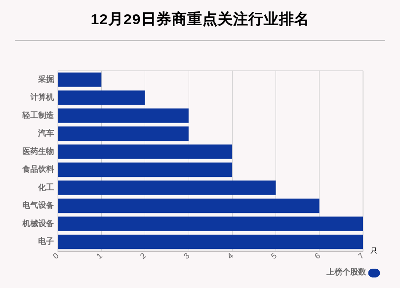 从券商对行业的关注度来看,券商关注个股数居前的行业分别是电子、机械设备、电气设备。
