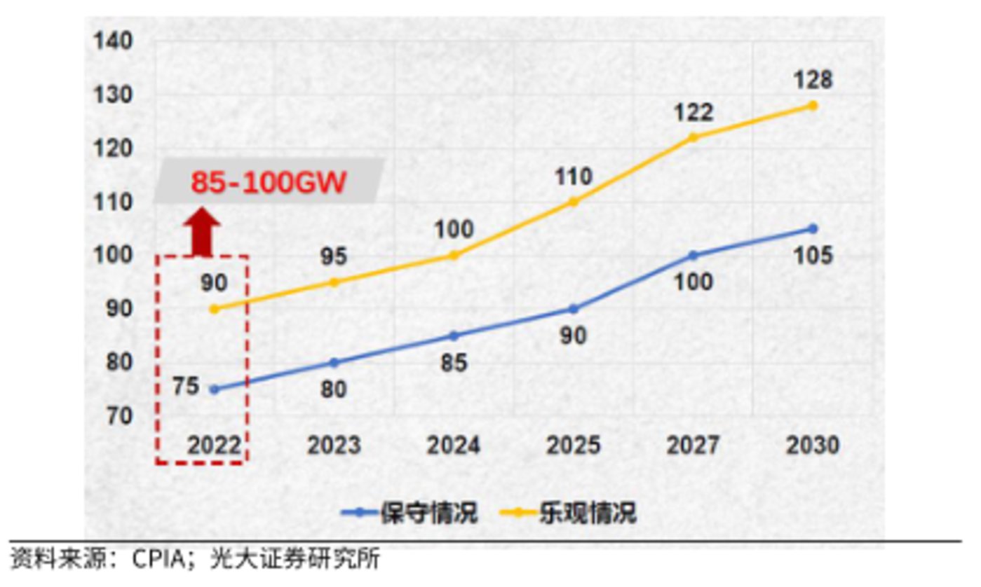 据了解,在“碳中和”大势之下,未来向新能源切换的步伐势必要加快,尤其是光伏和风电,过去几年成本大幅下降,光伏发电成本下降了90%以上,同时行业未来发展空间足够广阔。根据 CPIA预测,2022年-2030 年,全球和国内光伏新增装机量均会高速增长,累计装机量的提升带动光伏发电量的大幅提升。