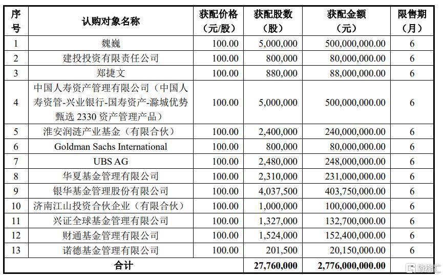 格隆汇6月6日丨钧达股份(002865.SZ)披露定增结果,确定本次发行价格100元/股,募集资金总额27.76亿元。本次发行对象最终确定13家,其中UBS AG、华夏基金等获配。