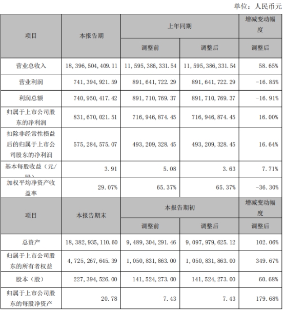 钧达股份昨日晚间披露2023年度业绩快报,公司2023年实现营业总收入183.97亿元,同比增长58.65%;实现归属于上市公司股东的净利润8.32亿元,同比增长16.00%;实现扣除非经常性损益后的归属于上市公司股东的净利润5.75亿元,同比增长16.64%。