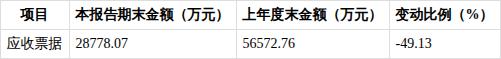 报告期末公司应收票据余额为2.88亿元,较上年度末的5.66亿元同比下降49.13%。应收票据规模的缩减,反映出公司在销售结算中,票据结算的占比有所下降,结合应收账款的大幅增长,公司收款结构的变化需持续关注。