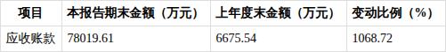 报告期末,公司应收账款余额达7.80亿元,较上年度末的6675.54万元大幅增长1068.72%。应收账款规模的大幅攀升,一方面或与公司为拓展市场放宽信用政策有关,另一方面也意味着公司现金流被占用的规模扩大,后续需关注应收账款的回收情况,警惕坏账风险及对资金流动性的影响。