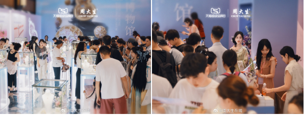 除此之外,周大生还在乌镇打造周大生发光博物馆,以鹊桥信箱-幸福之光、签到打卡-好运之光、国家宝藏专区-文明之光、十二花神专区-灿烂之光、艺术珠宝专区-浪漫之光、First专区-奇遇之光,探寻六大发光奇遇,在乌镇点亮浪漫七夕,活动现场吸引了大量乌镇游客来进行打卡互动,活动好评不断。