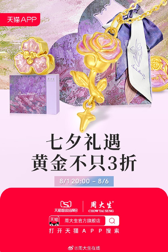 而此次由周大生品牌全球代言人任嘉伦在TVC中佩戴的国家宝藏系列新品青花瓷福禄绵绵,更是在天猫超级品牌日开售首日即实现全面售空。此次七夕,周大生产品可谓是凭借其独特的设计与创新工艺,迅速成为七夕节点的市场宠儿,销量与口碑双丰收,完美诠释了周大生“大生有礼为爱发光”的活动理念。