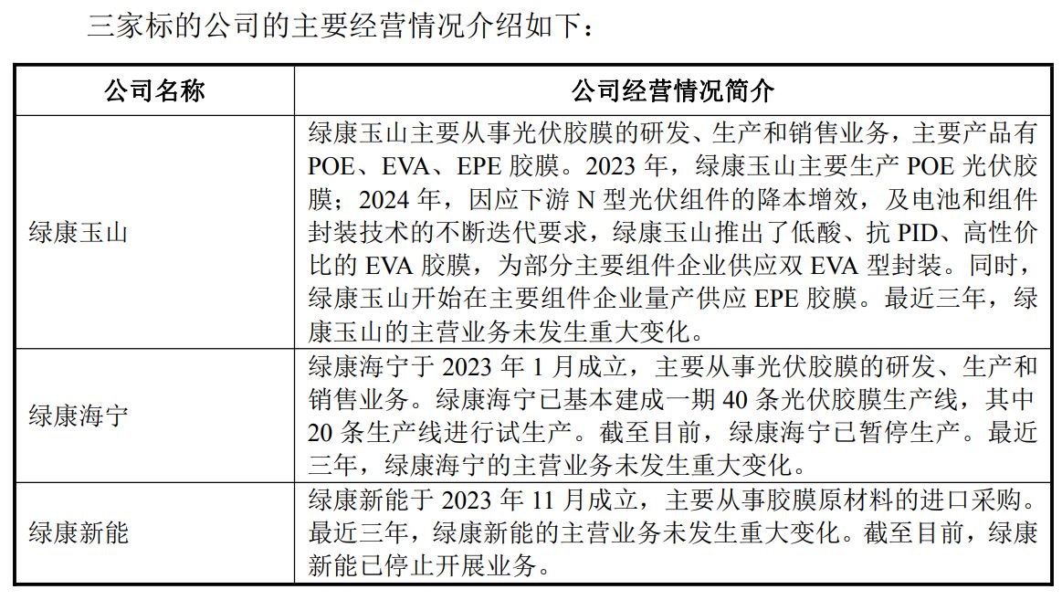 “收购时点绿康玉山已经与晶科能源存在稳定合作,是晶科能源N型TOP Con(隧穿氧化层钝化接触)技术路线、双玻组件用POE(聚烯烃弹性体)胶膜唯二的供应商,是晶科能源降本POE胶膜唯一的代工方,技术优势及产品质量经历过市场检验。”*ST绿康解释称。