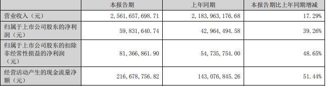 据香山股份2023年半年报,报告期内,公司实现营业收入25.62亿元,同比增长17.29%;归属于上市公司股东的净利润5983.16万元,同比增长39.26%;归属于上市公司股东的扣除非经常性损益的净利润8136.69万元,同比增长48.65%;经营活动产生的现金流量净额2.17亿元,同比增长51.44%。