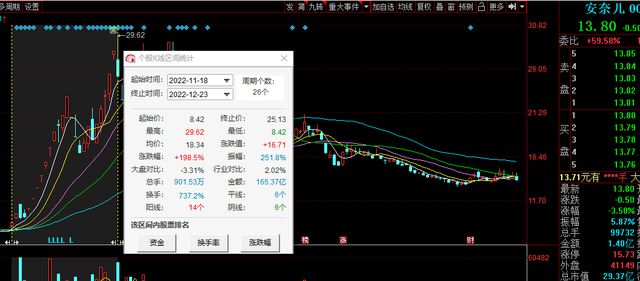 2022年11月18日开始,安奈儿股价一改低迷常态连续大涨,还创了历史新高。11月18日至12月23日,短短26个交易日,安奈儿涨幅198%,振幅高达251%。