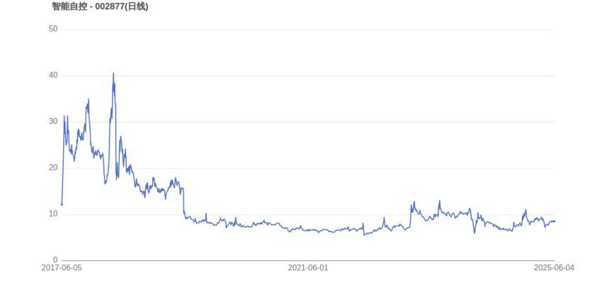 2018年5月18日,智能自控的市值巅峰达到58.17亿元,股价也顺应升至27.99元。而至6月4日收盘,智能自控的股价为8.5元,市值为30.08亿元,相比峰值时期市值减少28.09亿元,市值蒸发了48.29%。