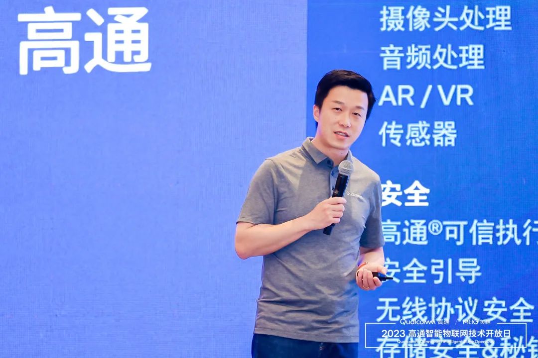 在现场,高通公司产品市场总监李骏捷带来主题演讲——《万物智联推动数字化转型》。他表示,高通凭借先进的连接技术、高性能、低功耗的计算技术、终端侧及边缘侧的AI技术打造成熟的系统级解决方案,满足行业智能化和定制化的需求。