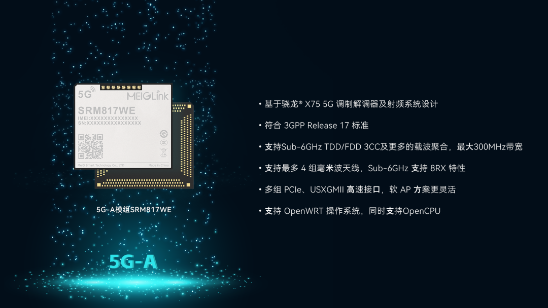 基于SRM817系列模组,美格智能推出了全新的5G-A FWA解决方案,支持更多频段、更多连接,帮助家庭和企业用户构建高速率网络,满足企业办公、视频会议、裸眼3D、VR游戏、8K HDR等高速率业务需求。