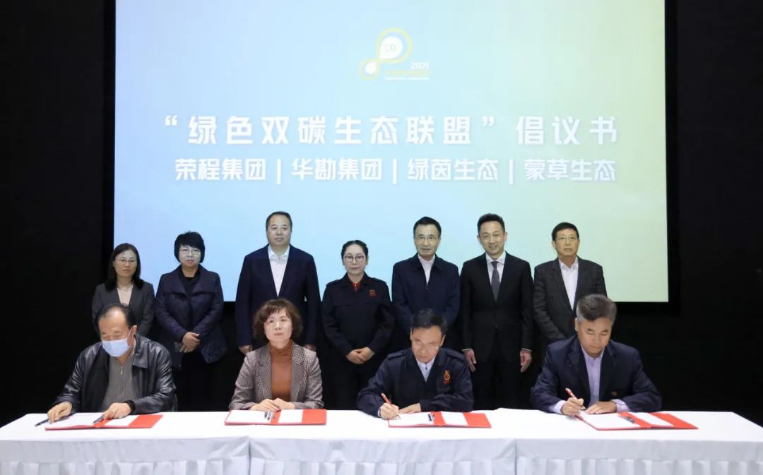 本次仪式上荣程集团、天津市环科院、天津华勘集团有限公司、天津绿茵景观生态建设股份有限公司、内蒙古蒙草生态环境集团共同发出成立生态联盟倡议,探索并打造与城市和谐共生新模式,为实现“双碳”目标贡献力量。