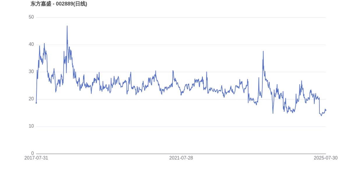 东方嘉盛自2017年7月31日上市至今,已迎来8周年。从上市首日收盘价为18.63元、市值25.73亿元,到如今市值达到60.31亿元。