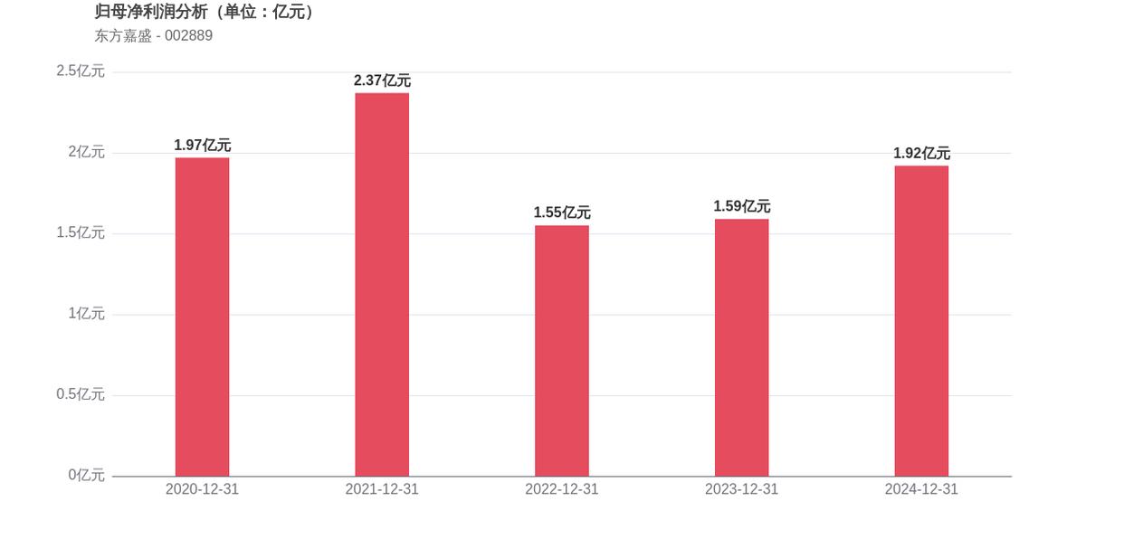 利润角度分析,2020年东方嘉盛实现归母净利润1.97亿元,2024年1.92亿元。利润水平在此期间保持相对稳定,但存在一定波动。