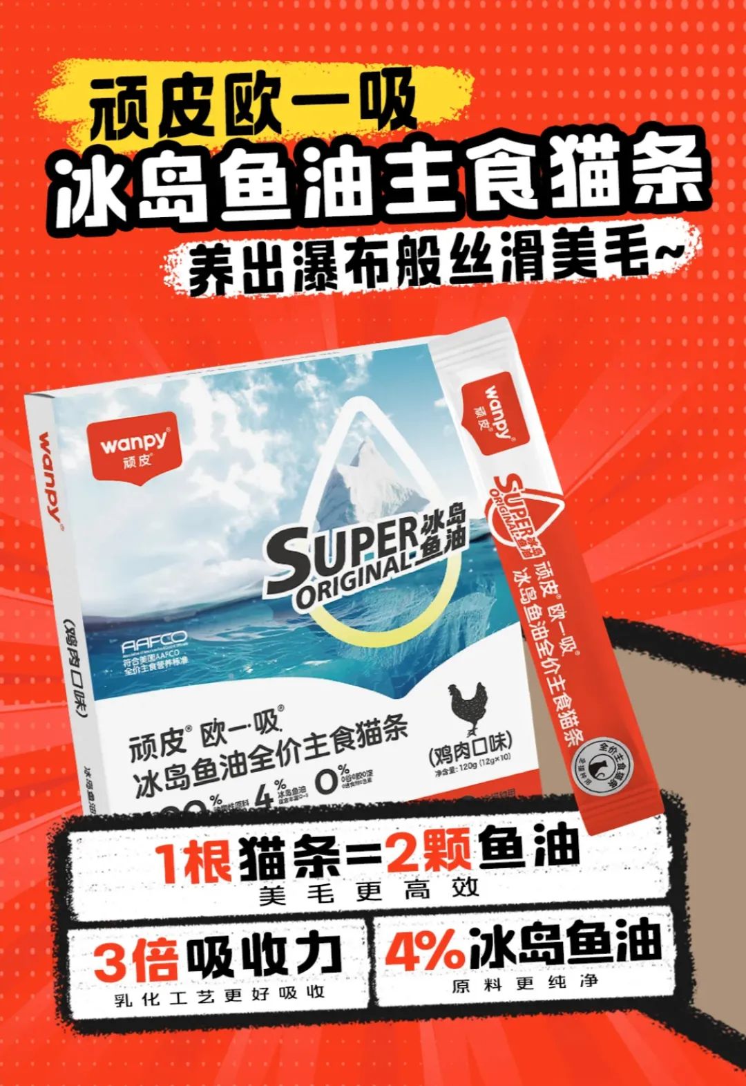 wanpy顽皮?欧一吸冰岛鱼油全价主食猫条(右)