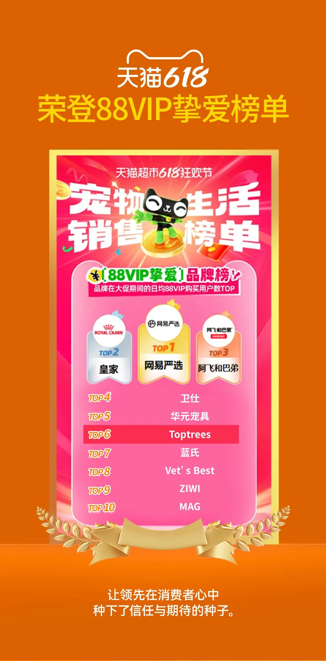 中宠股份自主品牌TOPTREES领先?,以荣誉见证成长!