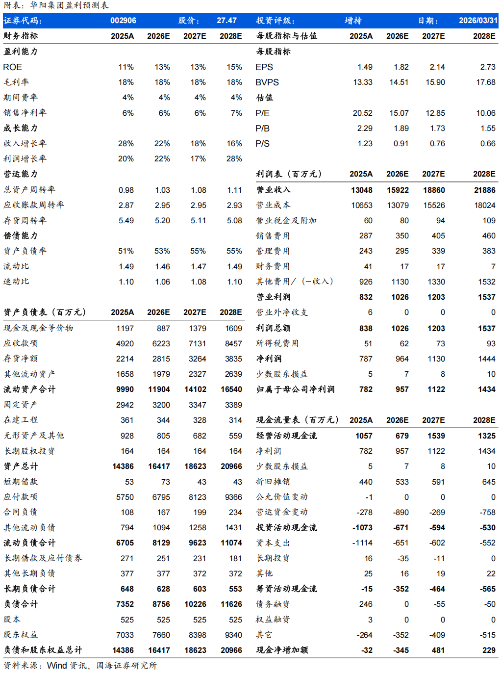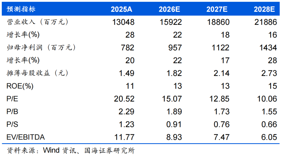 盈利预测和投资评级 公司产品结构与客户矩阵同步多元化,汽车电子多品类布局,贡献明确业绩增量,并前瞻布局AIBOX,助力端侧大模型前装量产;精密压铸切入光模块供应链,分享AI算力基建增长红利,具备盈利韧性。我们预计公司2026-2028年将实现营业收入159、189、219亿元,同比增速为22%、18%、16%;实现归母净利润9.57、11.22、14.34亿元,同比增速为22%、17%、28%,对应当前股价的PE估值分别为15、13、10倍。维持公司“增持”评级。
