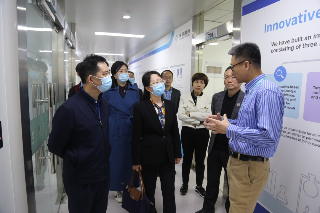 朱秀梅副司长一行考察了华森制药的药物研究院和创新药事业部,详细了解实验室设备、规范化建设、运行情况等,对实验室高质量建设情况等给予肯定。
