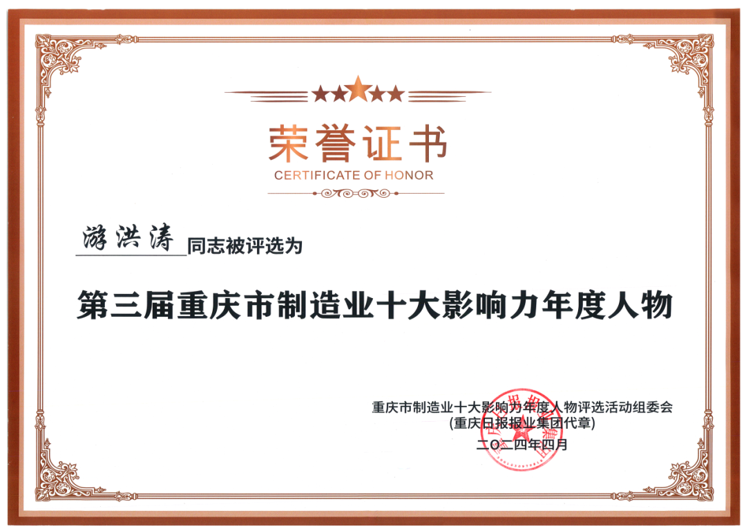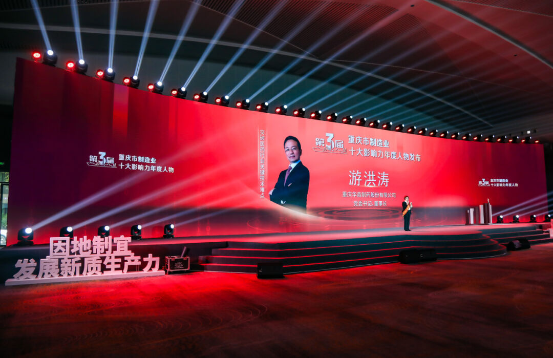 4月14日,第三届重庆市制造业十大影响力年度人物暨2023专精特新中小企业优秀企业家颁奖典礼在渝州宾馆举行。华森制药党委书记、董事长游洪涛荣获重庆市制造业影响力年度人物。
