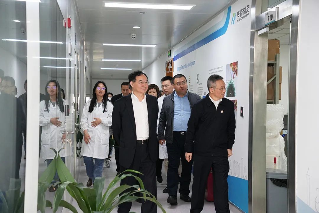 近日,国家科技部前沿技术司副司长傅小锋率队莅临华森制药调研指导。科技部前沿技术司三处处长马广鹏,科技部前沿技术司三处干部周欧、刘奏,重庆市科学技术局党委委员陈炳才,重庆市科学技术局二级巡视员、基础处处长冯光鑫,重庆市科学技术局基础处一级主任科员张忠峰陪同调研。
