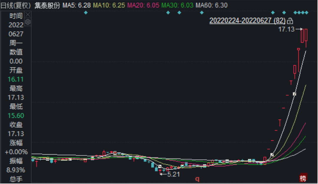 值得一提的是,集泰股份已经持续11个涨停,截至6月27日,公司股价报收17.13元/股,与6月24日的涨停价格相同。