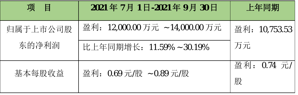 挖贝网10月12日,奥士康(002913)近日发布2021年三季度业绩预告公告,预计2021年第三季度实现归属于上市公司股东的净利润为12000.00万元–14000.00万元,比上年同期增加11.59%–30.19%。