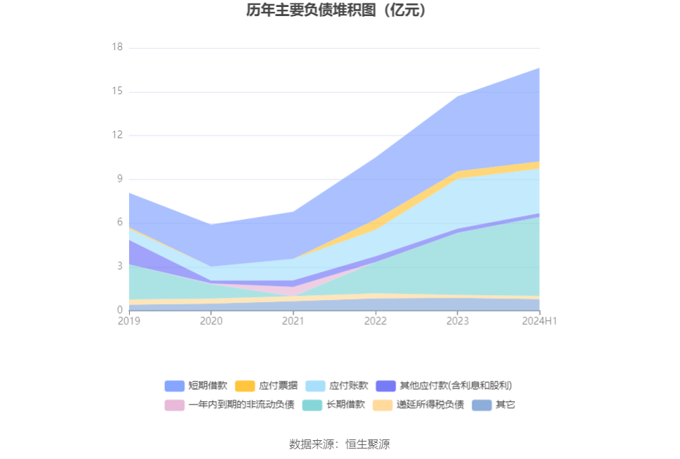 负债重大变化方面,截至2024年上半年末,公司短期借款较上年末增加25.33%,占公司总资产比重上升3.01个百分点;长期借款较上年末增加27.44%,占公司总资产比重上升2.76个百分点;应付账款较上年末减少10.94%,占公司总资产比重下降1.67个百分点;长期递延收益较上年末增加24.77%,占公司总资产比重上升0.19个百分点。