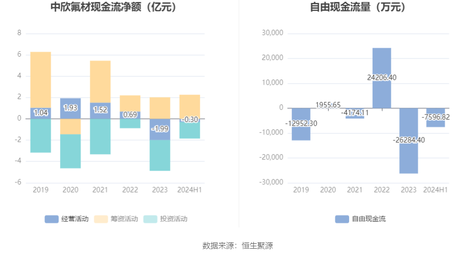 进一步统计发现,2024年上半年公司自由现金流为-7596.82万元,上年同期为-10285.40万元。