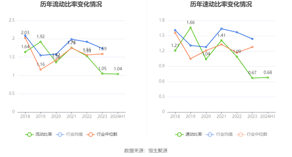 2024年上半年,公司流动比率为1.04,速动比率为0.68。