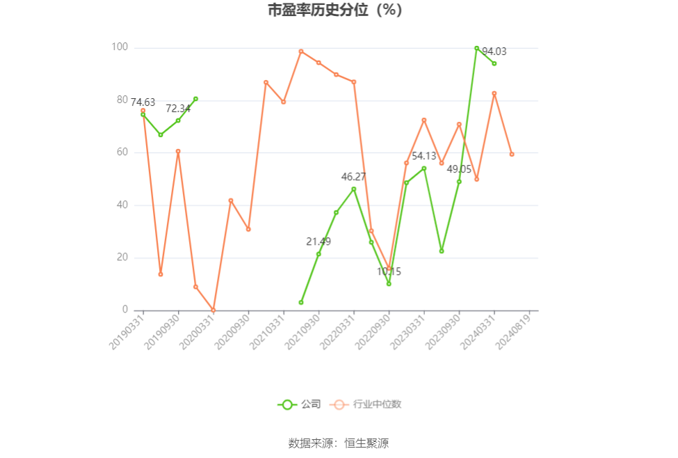 市盈率为负时,不显示当期分位数,会导致折线图中断。