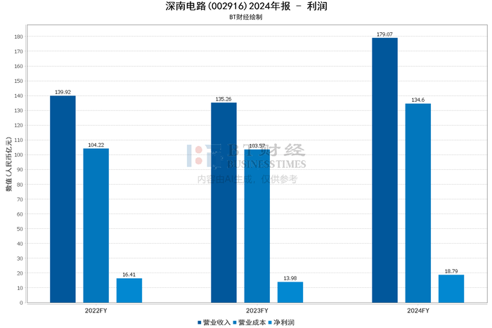 利润方面,2024年公司表现出色。营业收入达179.07亿元,较上年同期的135.26亿元增长32.39%。营业利润为20.28亿元,上年同期是13.98亿元,增长45.19%;净利润18.79亿元,同比增长34.38%。从业务板块看,印制电路板业务收入104.94亿元,同比增长29.99%,毛利率31.62%,通信、数据中心、汽车领域需求增长推动该业务发展;封装基板业务收入31.71亿元,同比增长37.49%,但毛利率降至18.15%,原材料涨价和产能利用率下降影响其盈利水平;电子装联业务收入28.23亿元,同比增长33.20%。整体利润增长得益于市场需求增长、产品结构优化以及成本控制等因素。